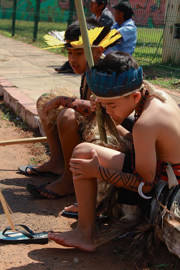 Josias Jordão Ramires, 35, cacique da Comunidade Marçal de Souza, resgata parte das tradições para os jovens e crianças indígenas da região localizada na capital do estado. Os ensinamentos tentam atrair o público jovem por meio de danças e do uso do dialeto. As crianças, adultos e idosos são retratados nesta reportagem durante as festividades do local.