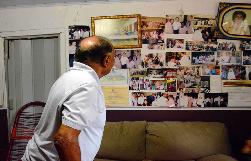 Maria Eva de Jesus, mais conhecida como Tia Eva, foi a fundadora da comunidade quilombola local. Eva tinha uma forte devoção: São Benedito. Dona Air Geronima dos Santos, 72, e Michel Geronima, 87, compartilharam lembranças sobre sua bisavó com a equipe do Projétil. Michel contou sobre a tradição mantida para os festejos da festa de São Benedito, realizada na segunda semana de maio. Eles e mais o benzedeiro Admiro Geronima, 88, são fotografados e evidenciam a força de uma comunidade.